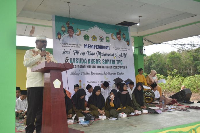 Acara wisuda akbar santri di Kecamatan Kundur Utara tahun 2022 juga disejalankan dengan peringatan Isra Mi’raj Nabi Muhammad SAW.