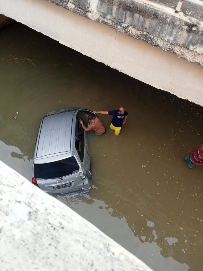 “Kronologis kejadian menurut keterangan pengemudi, sewaktu pulang mengantar adiknya ke pelabuhan domestik, mobil yang ia kendarai tersebut hilang kendali masuk diantara 2 celah jembatan, dan terjun ke laut,” ujar Kapolsek Tebing AKP.Brasta Pratama Putra. S.SIK.MH.