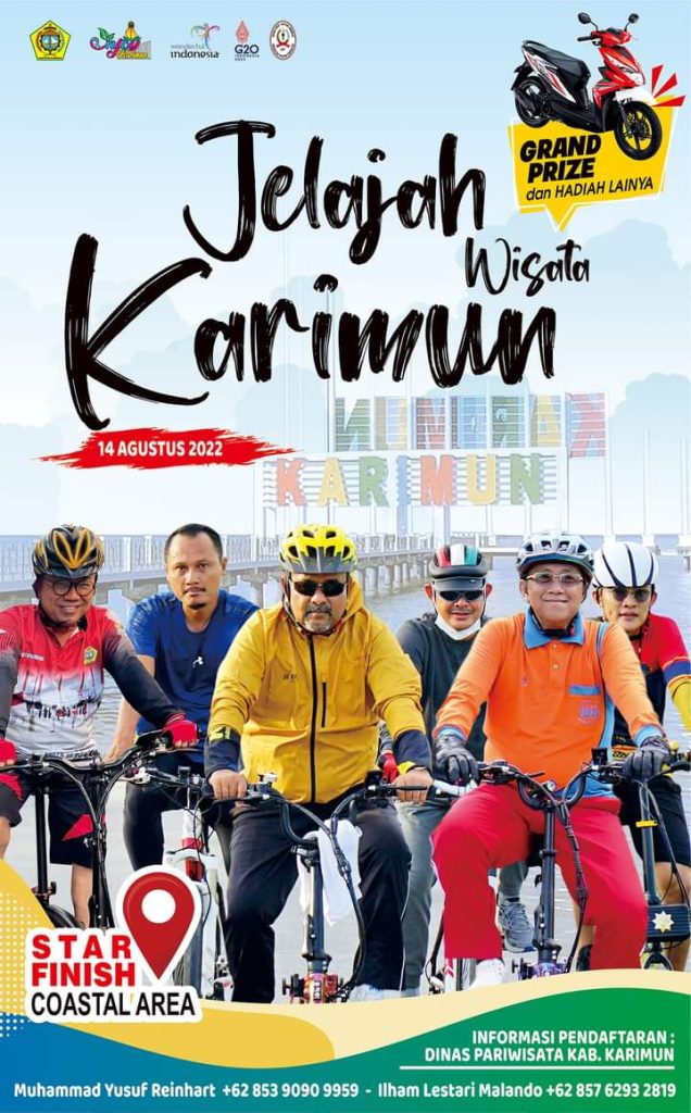 KARIMUN, kabarkarimun.co.id – Dinas Pariwisata bekerjasama dengan Disdagkop, UMKM dan ESDM Kabupaten Karimun akan melaksanakan kegiatan bersepeda Jelajah Wisata Karimun pada Minggu (14/8/2022).