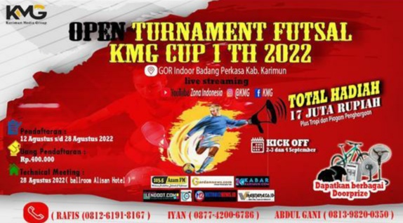 “Kegiatan dalam rangka HUT ke-77 RI ini kita gelar pertama, makanya kita namakan Open Tournament Futsal KMG Cup I Tahun 2022. Total hadiah yang kami sediakan Rp17 juta,” kata Ketua Panitia, Parulian Turnip, Selasa (16/8/2022).