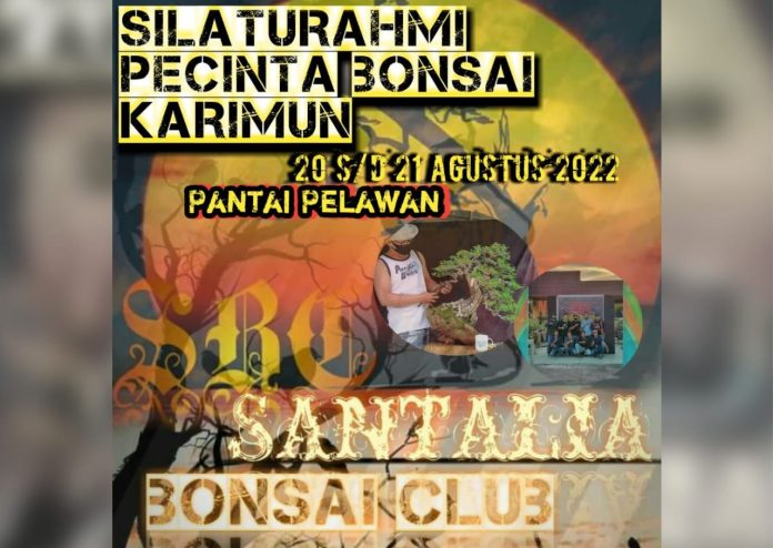 KARIMUN, kabarkarimun.co.id – Ajang silaturahmi bagi pemilik, dan pecinta bonsai di Karimun akan digelar oleh Santalia Bonsai Club di Pantai Pelawan Sabtu dan Minggu (20-21) Agustus 2022.