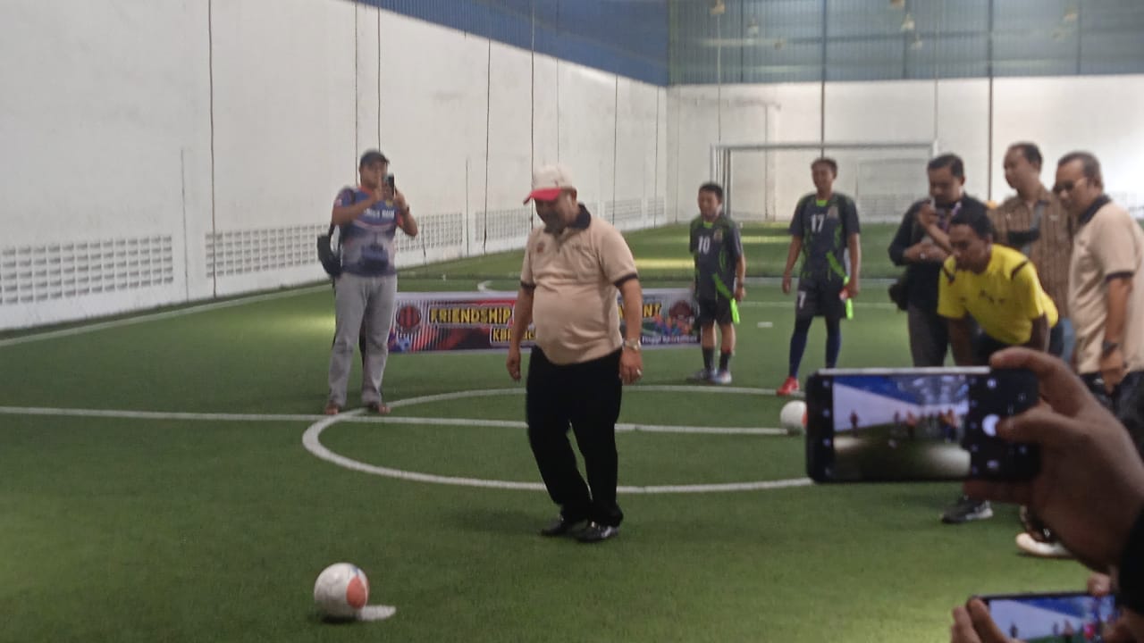 Pembukaan turnamem diawali dengan tendangan bola oleh Bupati Karimun ke gawang yang dikawal Ketua KBP3BC AKP Rizal Rahim SH.