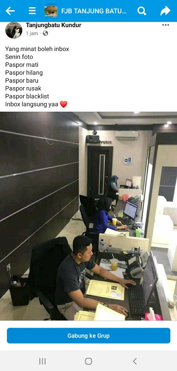 KARIMUN, kabarkarimun.co.id – Penipuan lewat jasa pengurusan paspor melalui media sosial Facebook marak terjadi belakangan di Kab.Karimun.