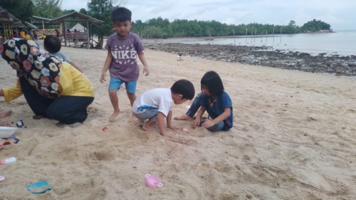 “Pasir putihnya bersih, tidak banyak sampah. Ini yang jadi daya tarik pengunjung ke sini untuk membawa anak-anak bermain,” ucap Lisa, Minggu (20/11/2022).