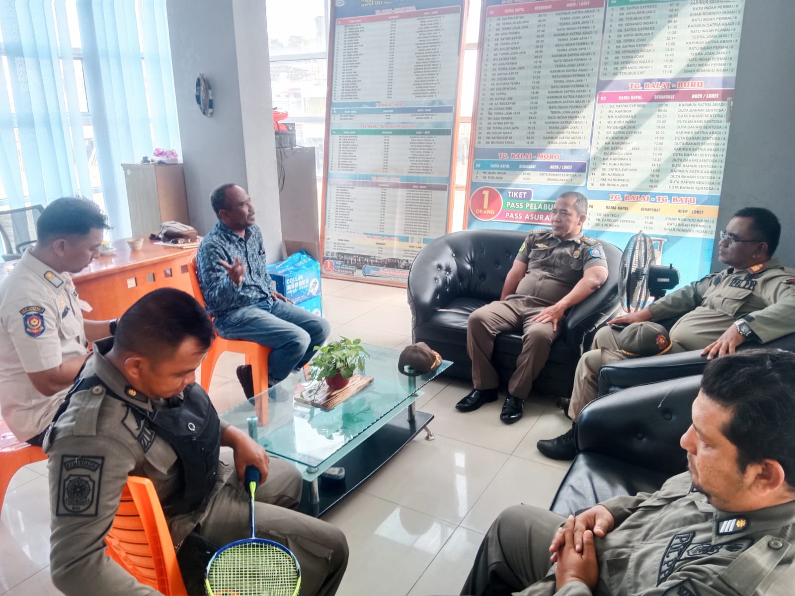 Dipimpin Kasi Tibum Chairis Wandy, Satpol PP Karimun berkoordinasi dengan pihak pelabuhan KPK Karimun, Kamis (12/1/2023).