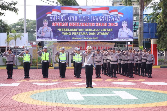 KARIMUN, kabarkarimun.co.id – Polres Karimun melaksanakan apel gelar pasukan Operasi Keselamatan Seligi Tahun 2023 di lapangan Polres Karimun, Selasa (7/02/2023).