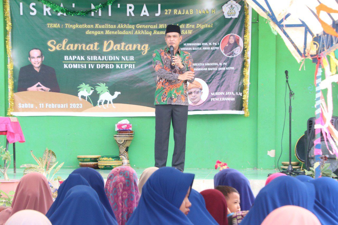 BATAM, kabarkarimun.co.id – Menyambut Isra Miraj tahun 1444 H, Sirajudin Nur, Anggota Komisi IV DPRD Kepri menghadiri undangan Yayasan Baitul Amar Batu Ampar Batam, Senin (13/2/2023)