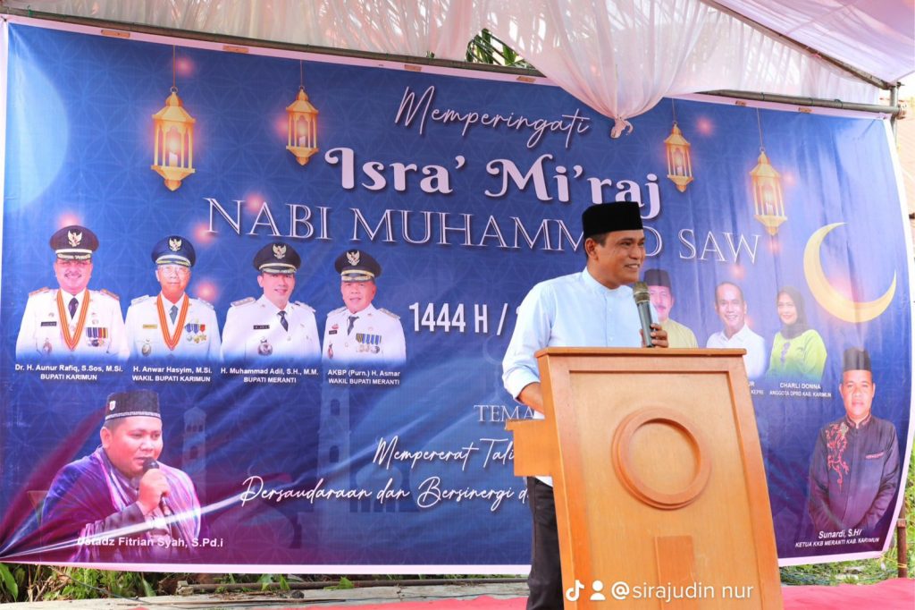 KARIMUN, kabarkarimun.co.id – Anggota Komisi IV DPRD Kepri Sirajudin Nur turut menghadiri peringatan Isra Miraj 1444H yang digelar Kerukunan Keluarga Besar Meranti Kabupaten Karimun.