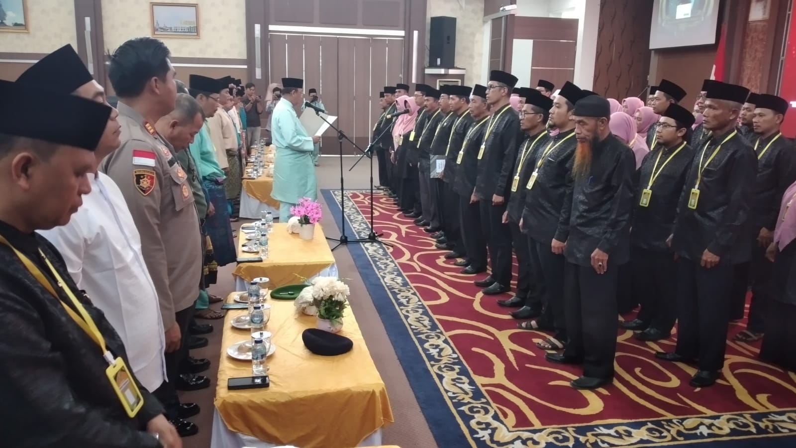 Pelantikan Dewan Hakim STQH dihadiri oleh unsur FKPD, kepala kemenag, serta tamu undangan lainnya.