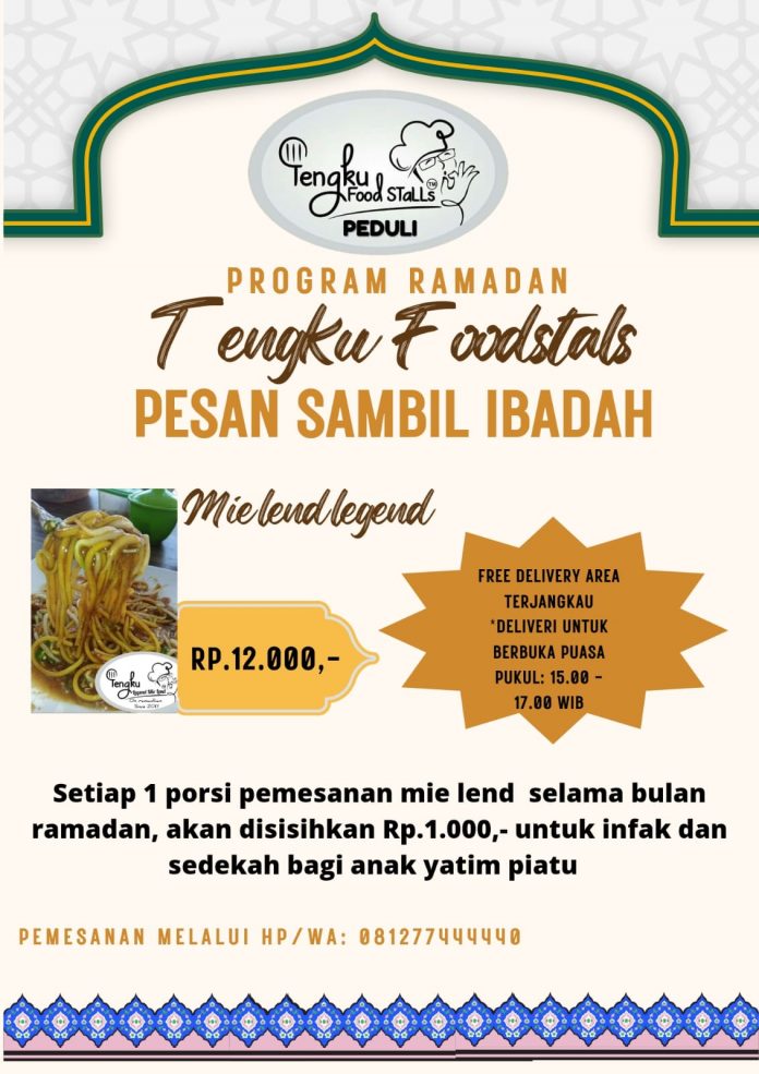 Karimun, kabarkarimun.co.id – Mie Lend tengku foodstalls menggelar program pesan sambil ibadah selama bulan ramadhan 1444 H/2023M.