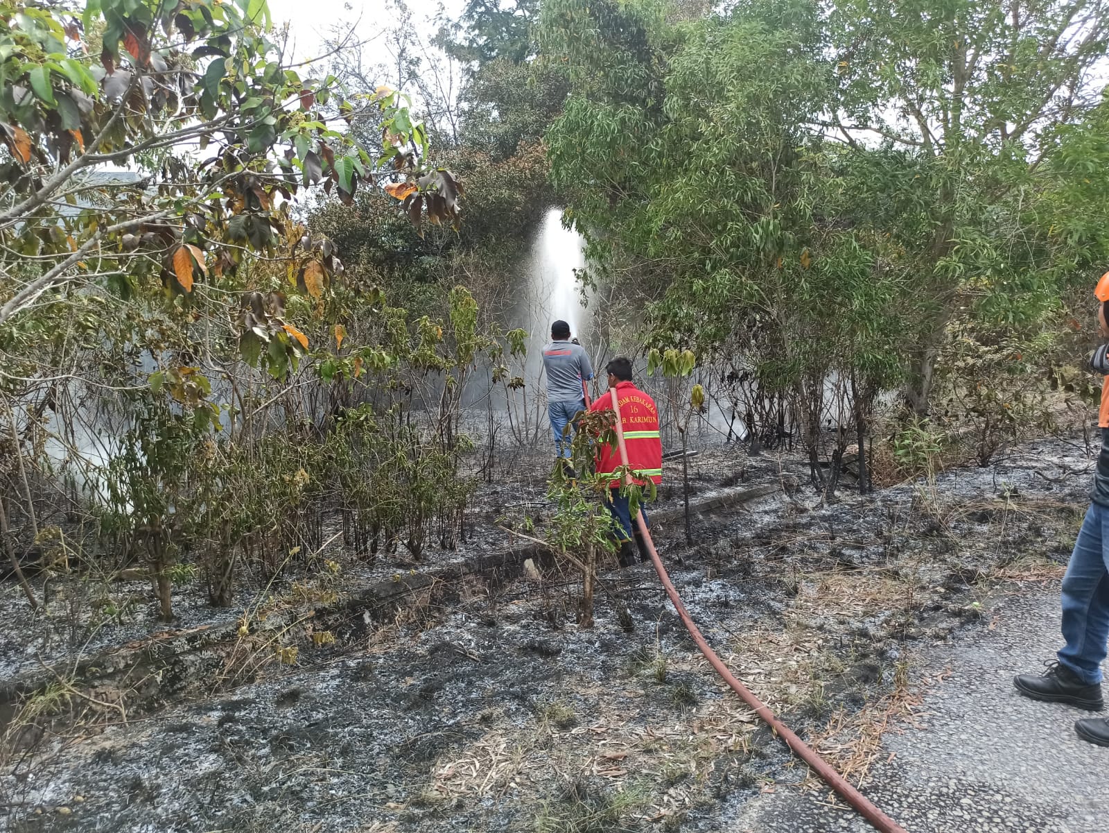 “Kami mendapati laporan kebakaran hutan tersebut dari Polsek Tebing. Sekira pukul 14.33 WIB, tim Damkar, dan TRC BPBD tiba di lokasi untuk memadamkan api,” ujar Kabid Damkar BPBD dan Damkar Karimun, Hendra Hidayat.