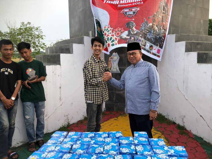 Dalam kesempatan tersebut, Komunitas e-Sport Tama membagikan 500 bungkus takjil kepada pengendara yang lewat di tugu MTQ tersebut.