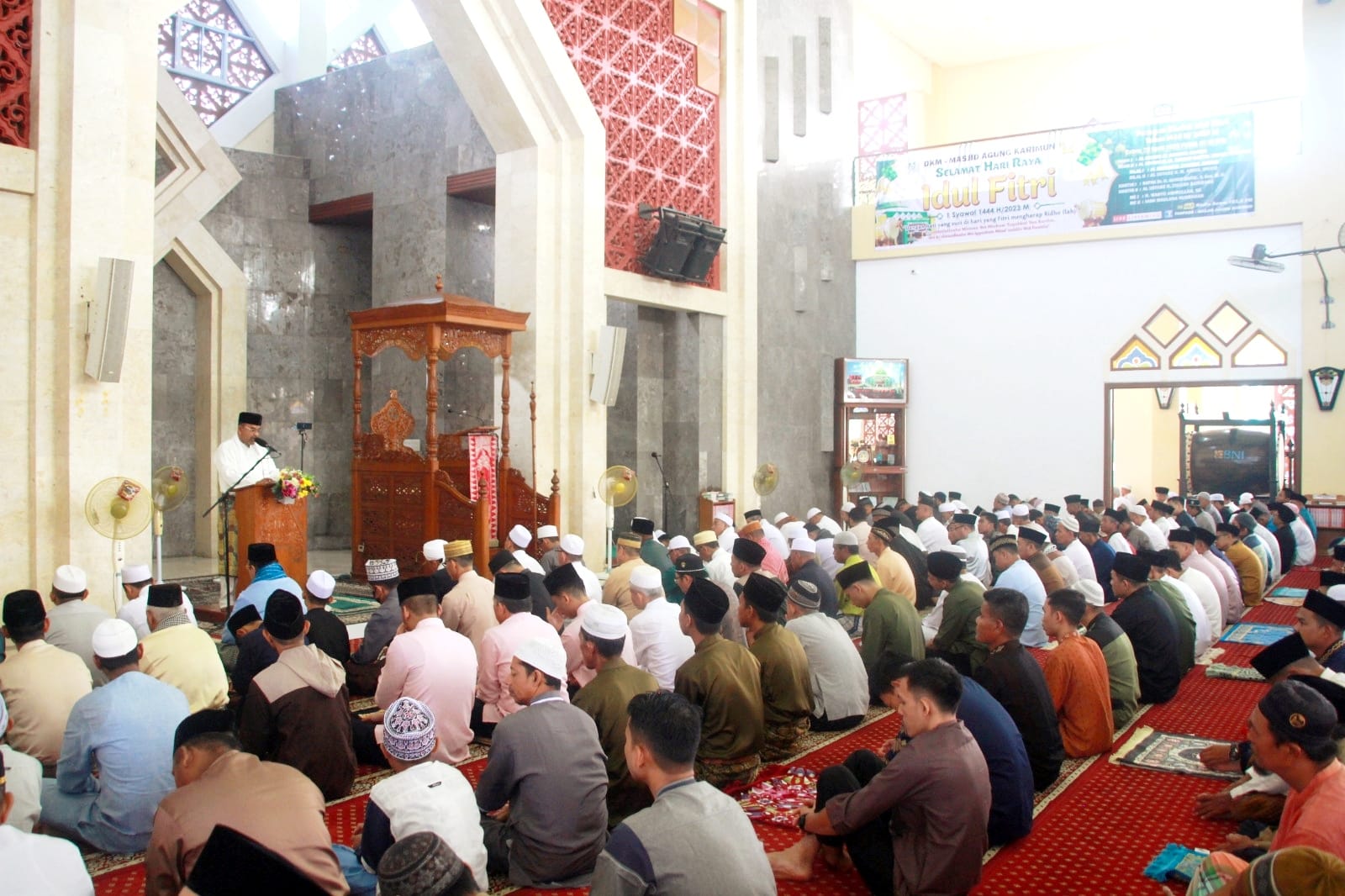 Bupati juga berpesan agar takbir yang kita gemakan hendaklah menyentuh hati kita yang paling suci yang akan melahirkan perilaku bersih dan terpuji baik di hadapan sesama manusia terlebih dalam pandangan Allah SWT.