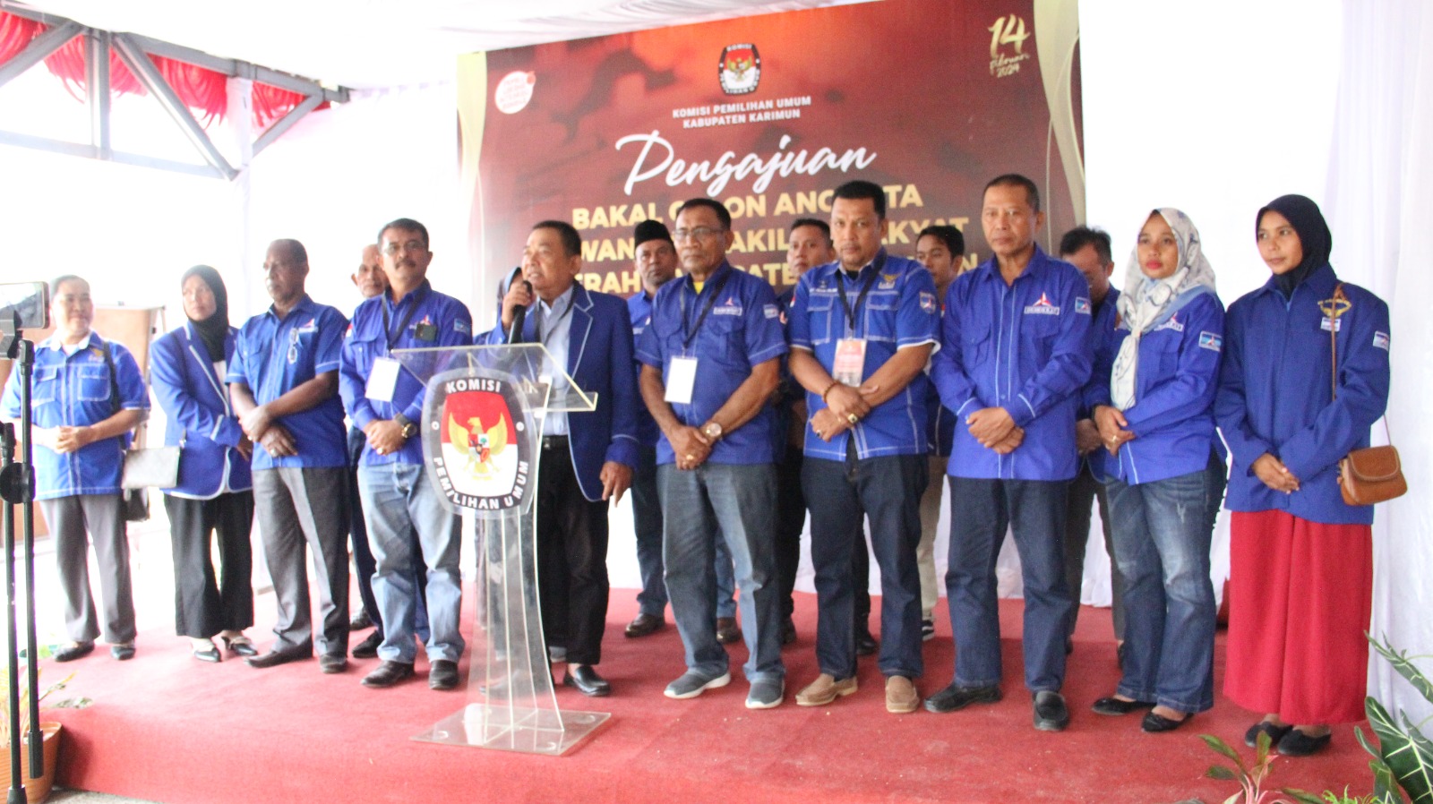 KARIMUN, kabarkarimun.co.id – Ketua DPC.Demokrat Karimun Sumardi bersama rombongan hadir ke kantor KPU Karimun dalam rangka mendaftarkan para Bacaleg yang akan mengikuti pileg 2024, Kamis (11/05/2023).