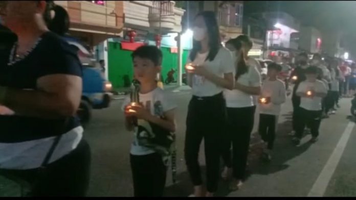 “Selain ibadah, ada juga proses berjalan dengan membawa lilin di setiap orang dengan makna sebagai penerangan agar hidup harmonis, aman dan sejahtera,” ucapnya.