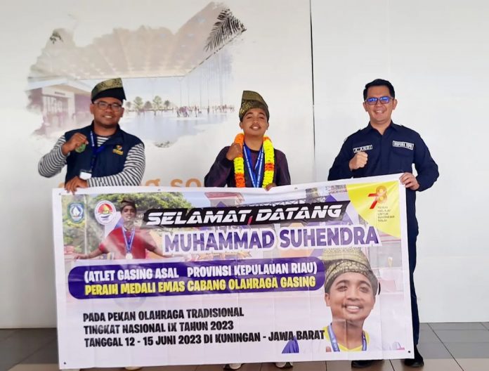 KARIMUN, kabarkarimun.co.id – Muhammad Suhendra, atlet gasing asal Kundur Kabupaten Karimun yang mewakili Provinsi Kepri berhasil meraih medali emas pada Pekan Olahraga Tradisional Tingkat Nasional IX tahun 2023 di Kabupaten Kuningan, Jawa Barat.
