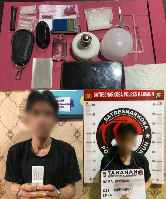 Kasatnarkoba Polres Karimun AKP. Arsyad Riyandi mengatakan, tersangka berhasil diringkus bersama barang bukti 6 paket sabu seberat 30,11 gram serta 19 butir pil ekstasi (4,70 gram) beserta alat hisap sabu.