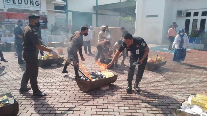 “Benda yang dimusnahkan merupakan barang bukti perkara dari tahun 2020 hingga tahun 2022. Termasuk barang-barang lainnya yang dipergunakan untuk melakukan maupun hasil dari tindakan pidana,” tutupnya.(nku)