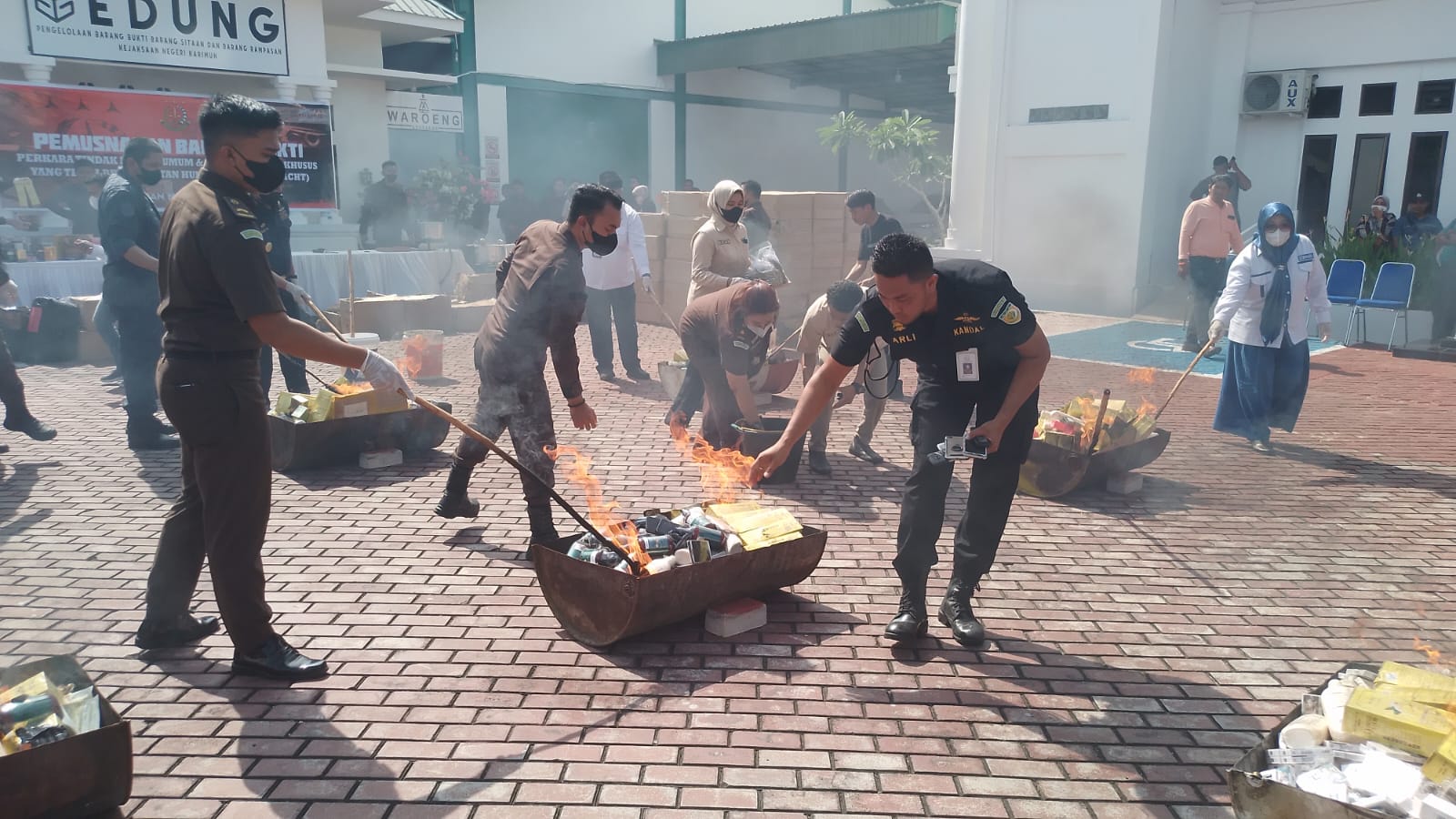 Proses pemusnahan barang bukti yang dilaksanakan di halaman kantor Kejari Karimun tersebut turut dihadiri perwakilan Polres, Pengadilan Negeri, Kanwil DJBC Khusus Kepri Karimun, BNN, BPOM Provinsi Kepri, PERADI serta tokoh masyarakat.