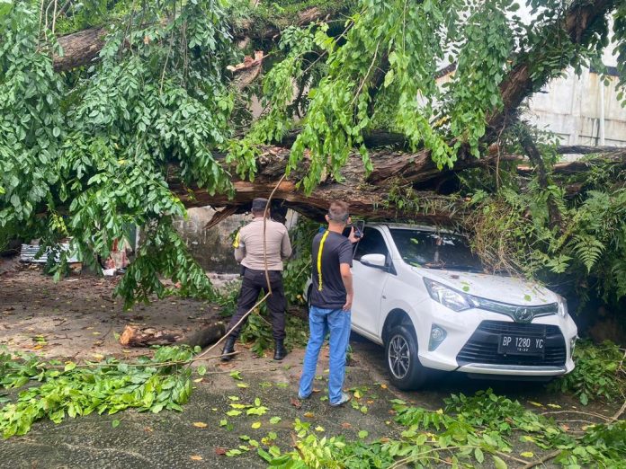 KARIMUN, kabarkarimun.co.id – Dua unit mobil milik warga dilaporkan mengalami rusak berat setelah ditimpa pohon tumbang paska hujan deras, Selasa (27/6/2023).