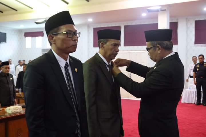 Proses pengangkatan sumpah jabatan, dan pelantikan PAW Anggota DPRD Karimun dipimpin langsung Ketua DPRD Karimun Muhammad Yusuf Sirat dalam sidang paripurna di Balai Rong Sri.