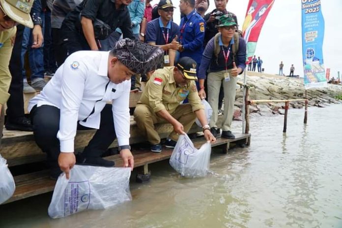 Penaburan benih ikan yang dilakukan Bupati Karimun Dr. H. Aunur Rafiq, SSos MSi bersama Kementerian Kelautan dan Perikanan RI yang di wakili Dirjen Penata Ruang Laut Kepulauan Riau Irpol Drs. Viktor Gustav Manopo, M.H ini, masuk dalam rangkaian GTRA Summit 2023.