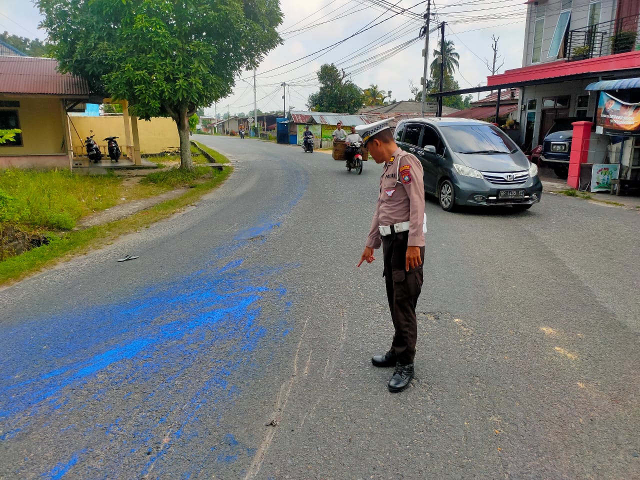 “Pengendara motor DKR datang dari arah jalan KH.Ahmad Dahlan berbelok ke sebelah kanan jalan menuju arah JL.diponegoro melalui lajur sebelah kiri. Sesampainya di tikungan Jl.Diponegoro, motor tersebut bertabrakan dengan truck bermuatan pasir merah yang dikendarai oleh F yang sedang melaju dari KM.2 menuju Tanjung Batu Kota,” ungkapnya.