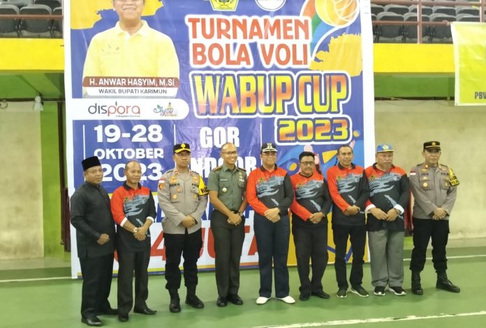 KARIMUN, kabarkarimun.co.id – Wakil Bupati Karimun Anwar Hasyim membuka turnamen bola voli Wabup Cup 2023 di GOR indoor Badang Perkasa, Kamis (19/10/2023).