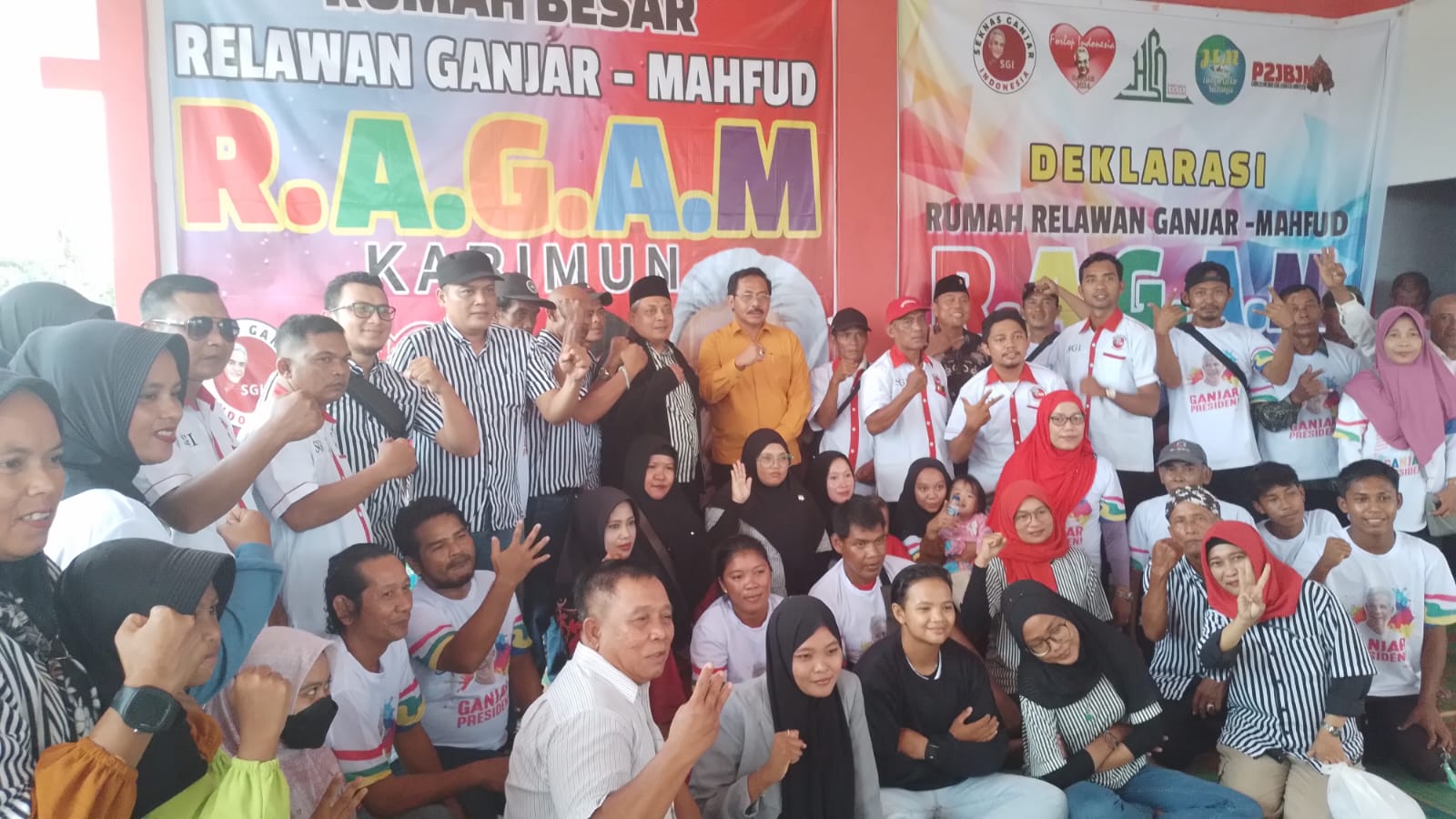 KARIMUN, kabarkarimun.co.id – Lima relawan pemenangan pasangan calon presiden Ganjar-Mahfud yang ada di Kabupaten Karimun, mendeklarasikan Rumah Besar Relawan Ganjar-Mahfud (RAGAM), Sabtu (25/11/2023) di warung bakso Mas Kimpul, Poros.
