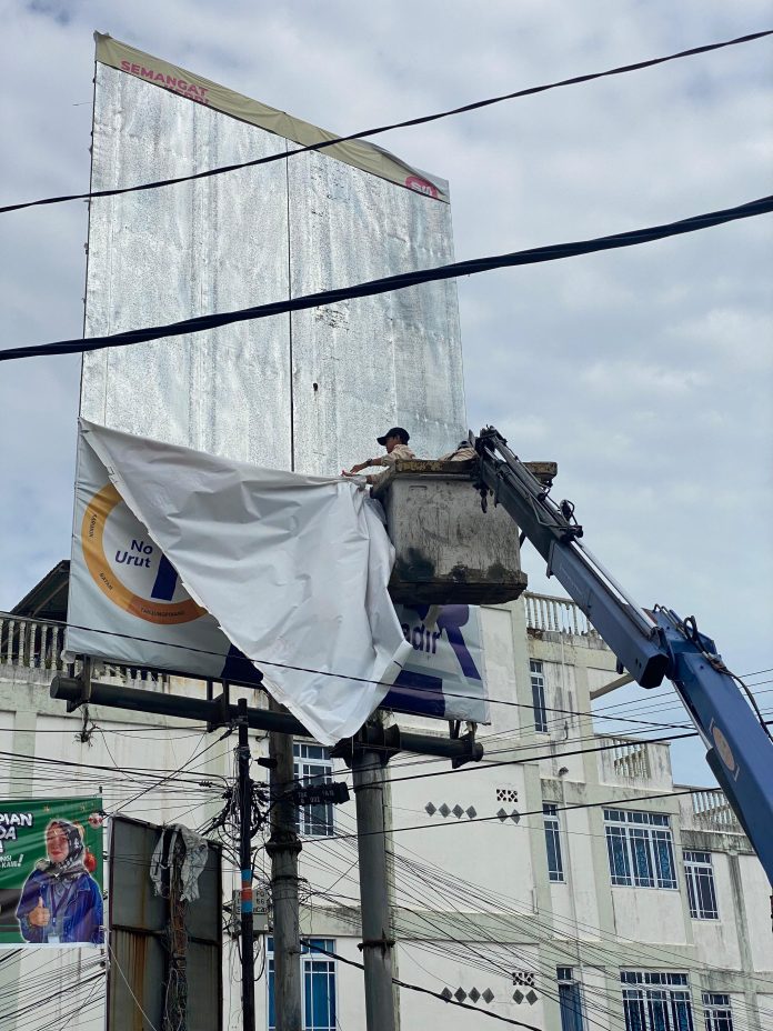 KARIMUN, kabarkarimun.co.id – Ratusan spanduk dan baliho calon anggota legislatif (caleg) diturunkan Bawaslu Karimun lantaran dianggap melanggar aturan pemasangan APK (Alat Peraga Kampanye).