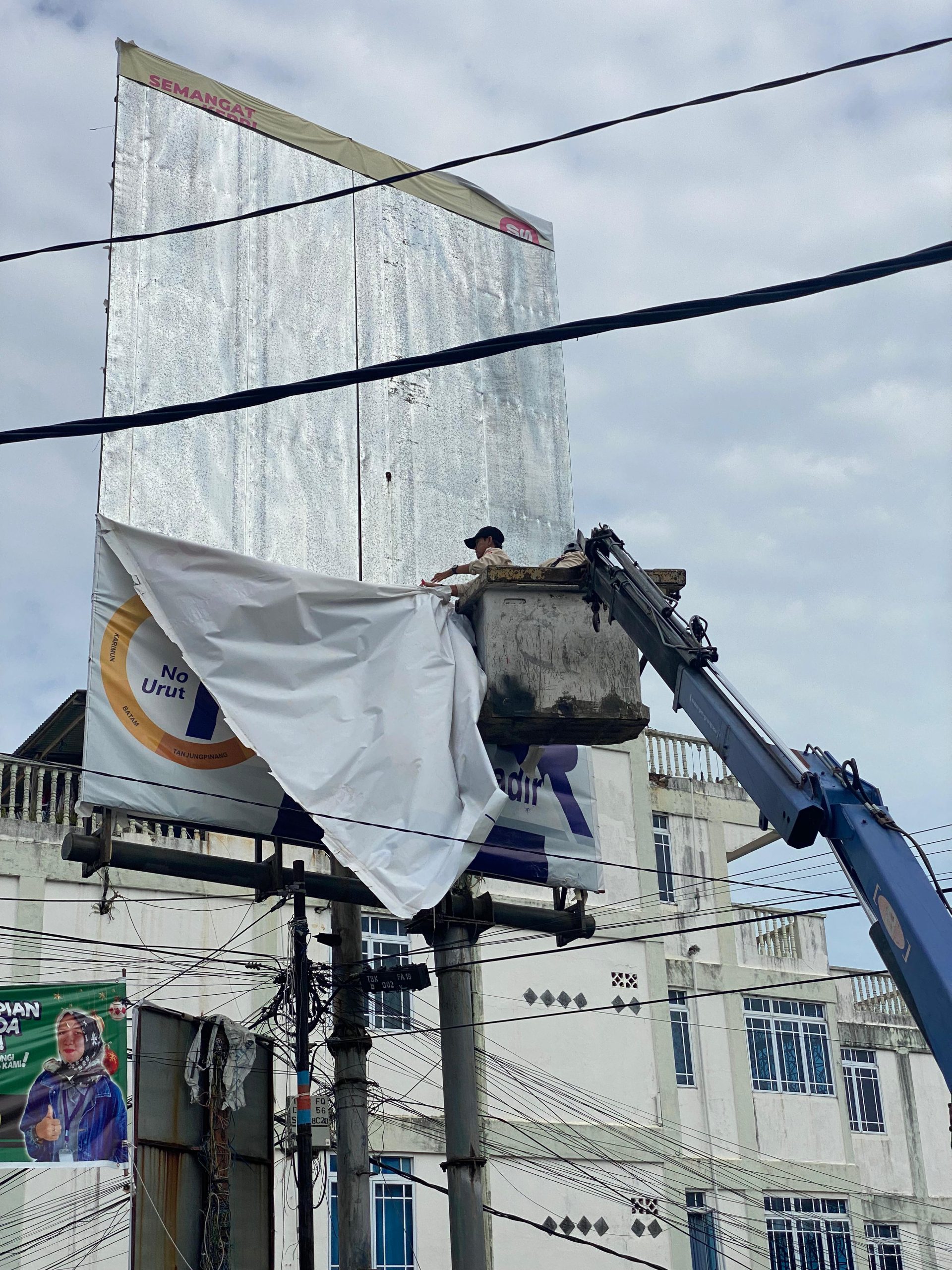 Penurunan baliho, dan spanduk dilakukan oleh Bawaslu Karimun bersama Satpol PP Kab.Karimun, kepolisian, TNI serta Panwascam di 14 kecamatan.