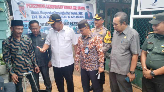 KARIMUN, kabarkarimun.co.id – Perumda Tirta Mulia Karimun meresmikan sambungan rumah (SR) gratis untuk Masyarakat Berpenghasilan Rendah (MBR) program hibah HAM Perkotaan Tahun Anggaran 2023, Selasa (16/01/2024).