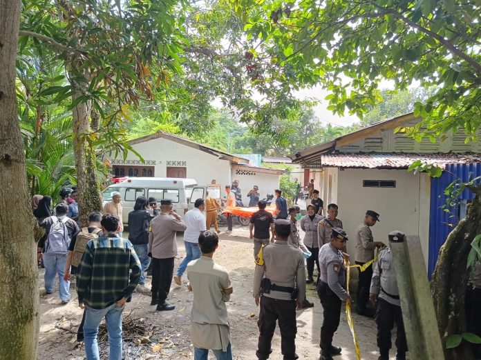 “Jenazah pertama kali ditemukan oleh abangnya dengan kondisi tergantung menggunakan kain berwarna hitam pada pukul 09.30 WIB,” ujar saksi, Azmi.
