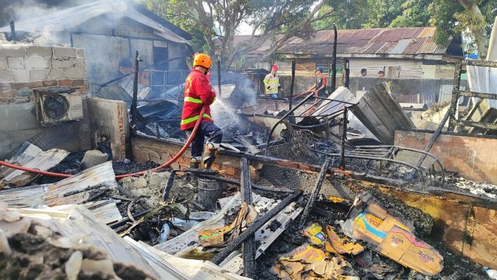 “Tidak ada korban jiwa dalam kejadian kebakaran. Kerugian juga belum dapat dipastikan. Yang pastinya rumah semi permanen yang satu terbakar habis, dan dua unit rumah lainnya terdampak kobaran api,” sebutnya.
