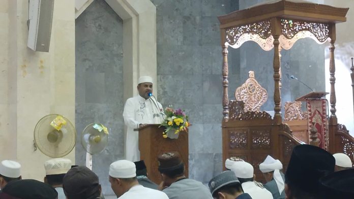 Sebelum melaksanakan ibadah salat Tarawih, Bupati Aunur Rafiq diminta memberikan sambutan sekaligus mengisi tausiyah Ramadhan di Masjid Agung Karimun.