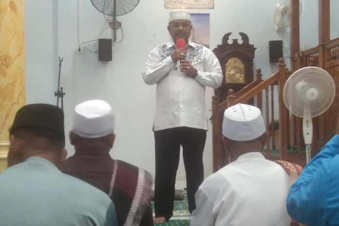 Sebelum mengawali salat tarawih berjamaah, orang nomor satu di Bumi Berazam ini menyerahkan bantuan kepada petugas masjid.
