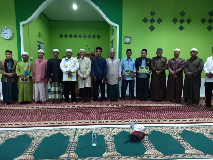 Bantuan diberikan secara simbolis oleh Aunur Rafiq kepada pengurus masjid usai melaksanakan kegiatan Safari Ramadhan di masjid Al – Ikhram Desa Rawa Jaya, Kecamatan Sugie Besar, Sabtu (16/3/2024).