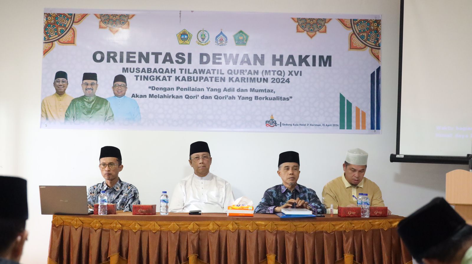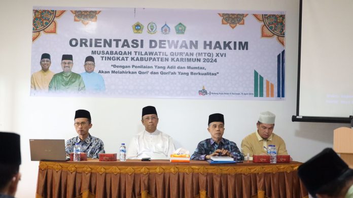 KARIMUN, kabarkarimun.co.id – Sebanyak 107 orang Dewan Hakim Musabaqah Tilawatil Qur’an (MTQ) ke XVI Kabupaten Karimun menjalani orientasi, Senin (15/04/2024).
