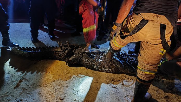 KARIMUN, kabarkarimun.co.id – Seekor buaya sepanjang lebih kurang 3 meter berhasil diamankan tim BPBD dan Damkar Kab.Karimun, Senin (22/4/2024) malam.