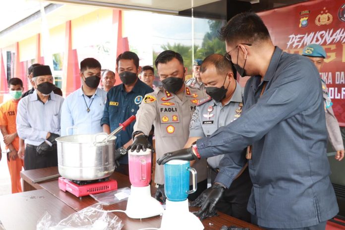 Fadli Agus melanjutkan, pemusnahan barang bukti dilakukan dengan cara memasukannya ke dalam tempat yang berisikan air mendidih kemudian dilarutkan.