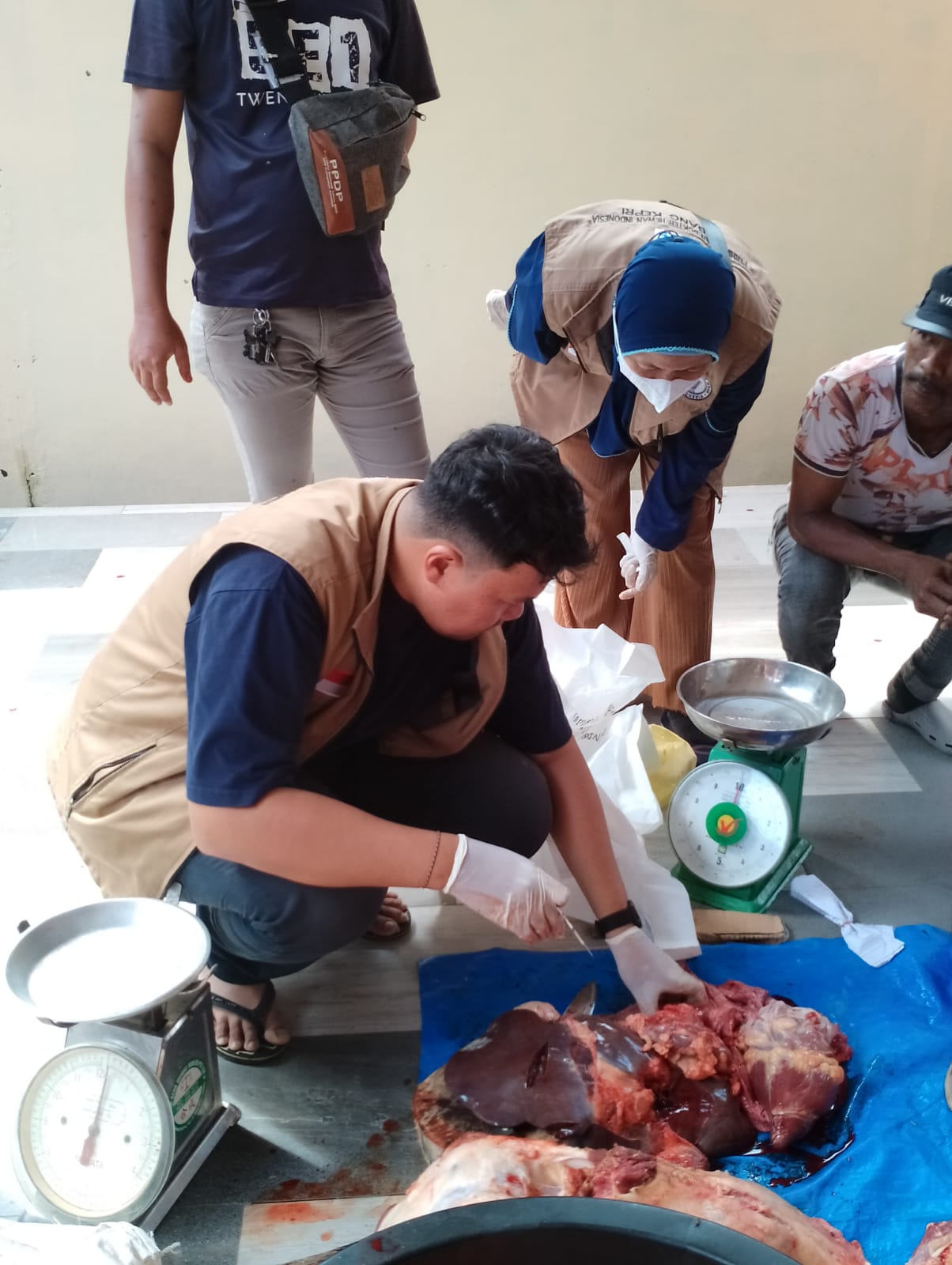“Post mortem (proses identifikasi setelah penyembelihan hewan kurban) juga dilakukan meliputi organ dalam serta daging kurban apakah layak untuk dikonsumsi, baru setelah itu bisa dibagikan ke masyarakat,” lanjutnya.