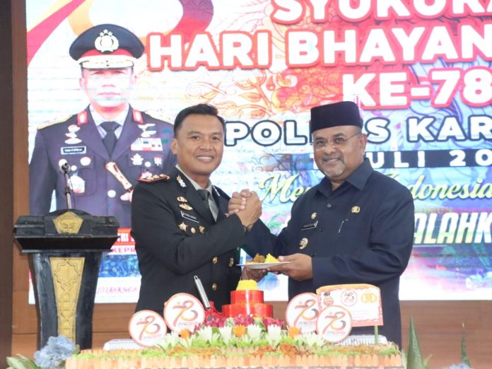 ”Atas nama masyarakat dan jajaran pemerintah Kabupaten Karimun kami mengucapkan selamat Hari Ulang Tahun Bhayangkara yang Ke-78. Kami sangat mengapresiasi Polri dalam hal ini Polres Karimun yang telah menciptakan situasi dan kondisi kamtibmas terjaga dengan baik,” ucap Bupati. (nku)