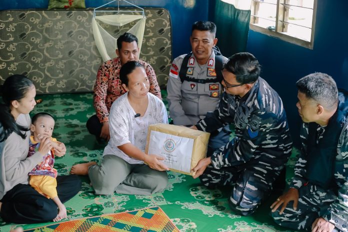 Bantuan sosial diserahkan Danlanal TBK Letkol Laut (P) Anro Casanova melalui Bhabinpotmar Serda Suhandri dan Bhabinpotmar Kopka M.Rozi serta Bhabinkamtibmas Bripka Buzari di kediaman orang tua Hasby.