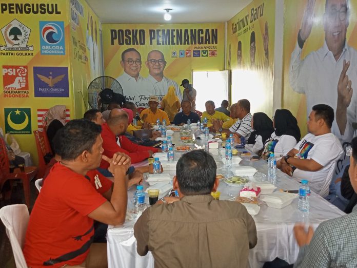KARIMUN, kabarkarimun.co.id – Tim Koalisi Partai Pengusul Bakal Calon Bupati dan Wakil Bupati Firmanyah – Ery, menggelar rapat perdana, Minggu (22/9/2024) di Posko Pemenangan Balai Garden, Kapling.