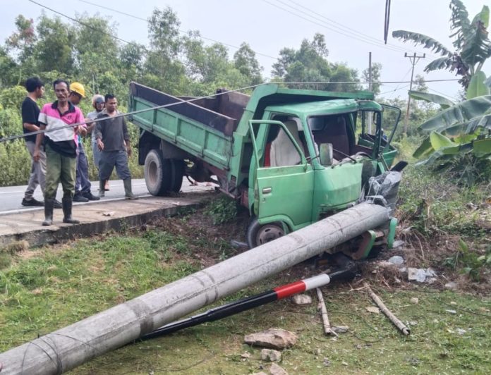 Beruntung supir berhasil menyelamatkan diri. Namun kondisi lori ringset sebelah kiri akibat menghantam tiang listrik.