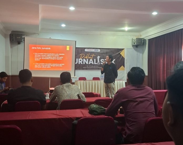 Hari pertama peserta mendapat pemaparan dan pelatihan dari Ketua JMSI Kepri, Eddy Supriatna perihal Penulisan Naskah Berita.