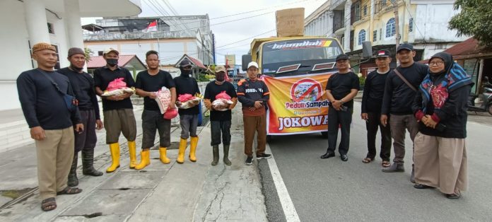 Mengantisipasi berbagai kemungkinan yang ditimbulkan akibat tumpukan sampah, Joko Warsilo bersama Camat Kundur Syaifullah mengajak warga gotong royong menggelar aksi peduli kebersihan dengan mengangkut sampah.