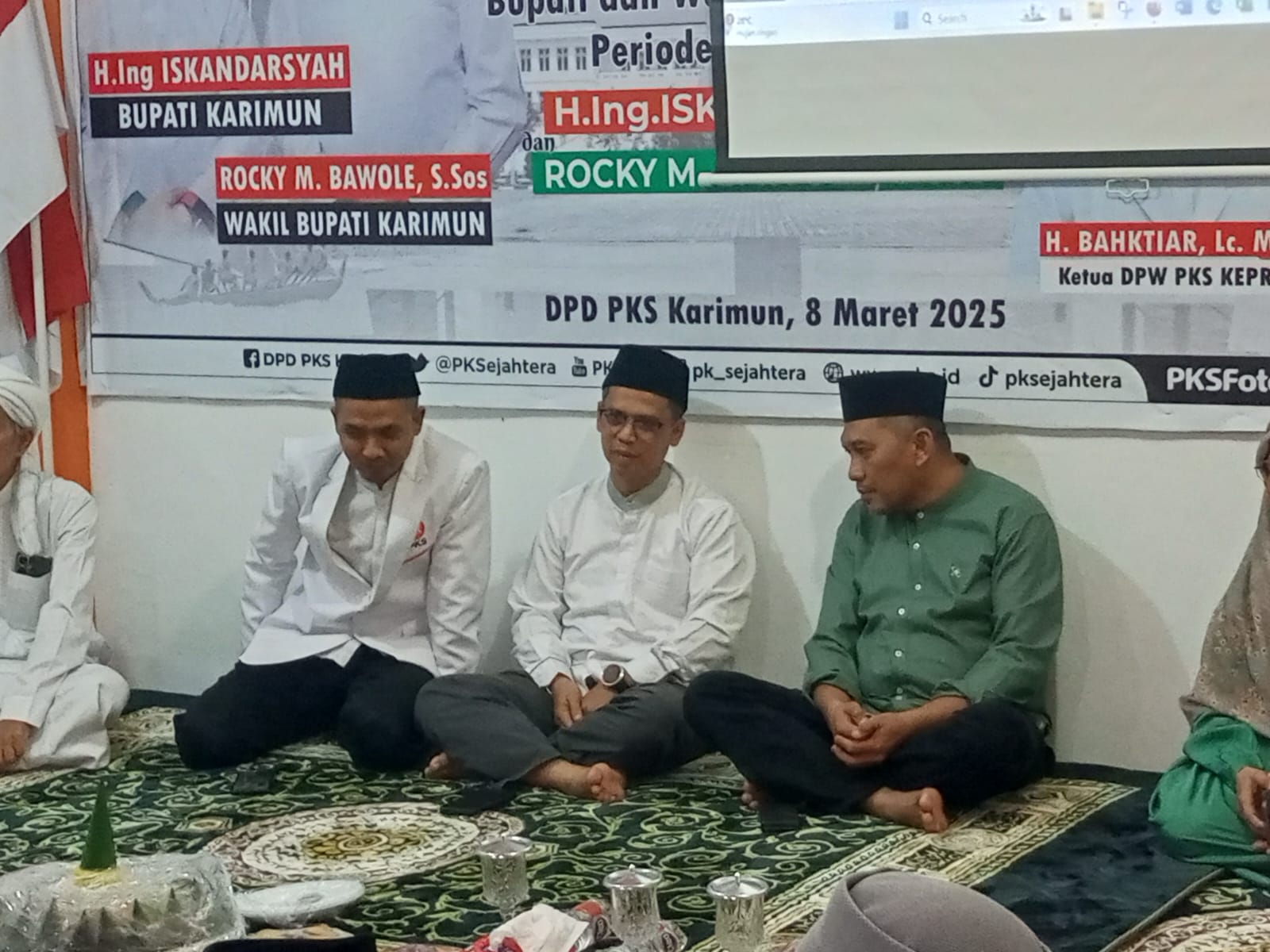 KARIMUN, kabarkarimun.co.id – Dewan Perwakilan Daerah (DPD) Partai Keadilan Sejahtera (PKS) Kab.Karimun menggelar tasyakuran pelantikan Bupati dan Wakil Bupati Karimun Iskandarsyah – Rocky Marciano Bawole sekaligus Buka Puasa Bersama (Bukber) Sabtu, (08/03/2025).