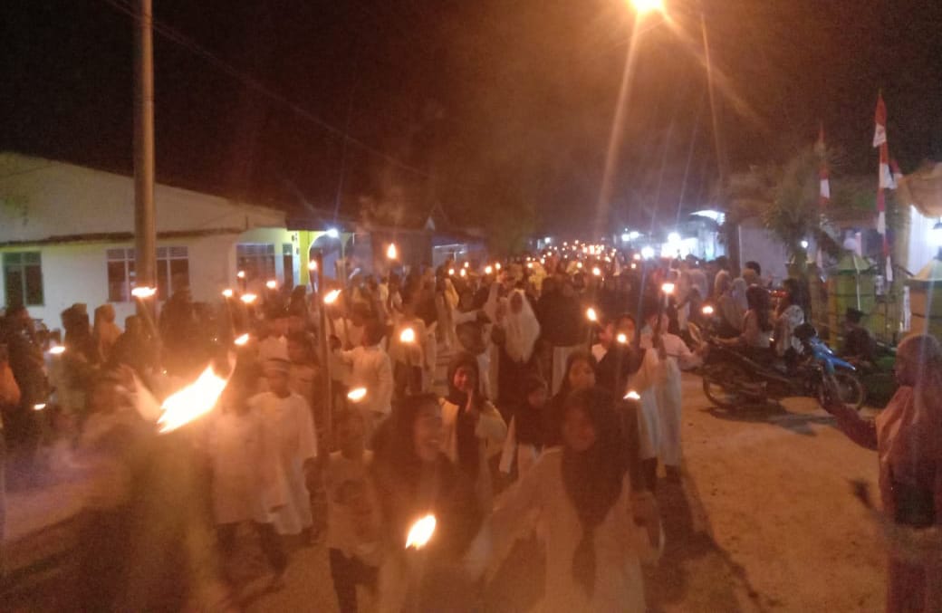 Pawai obor berlangsung meriah, dan penuh semangat. Peserta pawai mulai dari anak-anak hingga orang dewasa membawa obor sambil menyusuri jalanan.