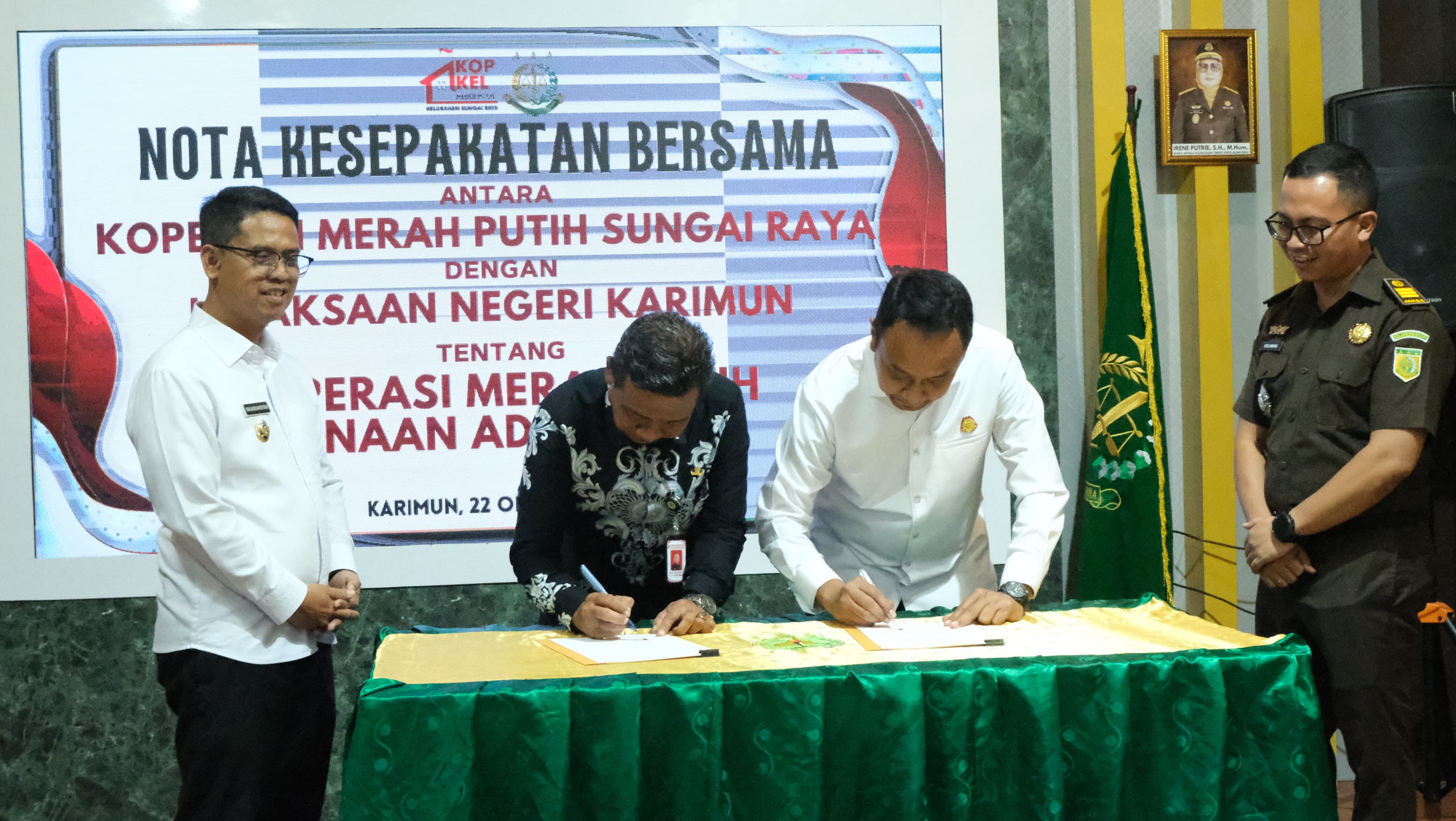 KARIMUN, kabarkarimun.co.id – Kepala Kejaksaan Negeri (Kajari) Karimun Dr Denny Wicaksono bersama Ketua Koperasi Merah Putih Sungai Raya M. Jais menandatangi Nota Kesepekatan (MoU), Rabu (22/10/2025) di aula Kejari Karimun.